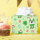 Brincar de presente de Natal irlandês criativo, com Papais noeis cercados por shamrocks e guloseimas de Natal.