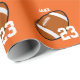 Papel de enrolamento Laranja do jogador de futebol Você pode escolher a cor do seu time para o plano de fundo. Este papel personalizado de embrulho de futebol é um imperativo nesta estação!