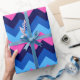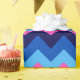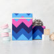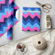 Um rolo de papel de embalagem com um padrão bonito e colorido design de tons azuis e cor-de-rosa.