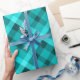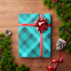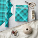 Um rolo de papel de embrulho com um design de padrão de xadrez elegante em turquesa legal e calmante.
