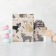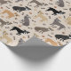 Pitbull Bonito com cores pretas, desfocadas, brindle, azuis e casaco vermelha com estampas de pata e padrão de ossos de cães.