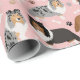 Cães-pastor de Shetland Cute sentam-se e ficam de pé e rollover com casacos de cor sarna, tripla e branca, com ossos de cão espalhados e padrões de pegadas.