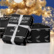Aqui está uma forma excelente de melhorar as ofertas de graduação (e muito mais). Papel de embrulho personalizado de graduação em preto e branco que é personalizado com uma aventura aguarda um padrão. Apresentando o texto, "Parabéns! Classe de 2025." Ele tem um fundo preto clássico com seu monograma e nome desejados exibidos. Use a modelo para personalizar.