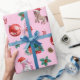 Este papel de embrulho de Natal da Unicórn apresenta uma ilustração encantadora de aquarela um casal de unicórnios mágicos em Santa Hats, assim como árvores de Natal e outros elementos de Natal. Você também pode personalizá-lo adicionando o nome da sua garotinha ao jornal.