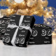 Aniversário de 30 anos de Modelo personalizado Papel de enrolamento preto e branco em vários acabamentos, como brilho e mate. O texto personalizável, com 30 anos, nome e data, é Patternado na embalagem do presente sobre a colina.