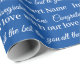 Melhore seu presente com este papel de empacotamento personalizado com dois campos personalizáveis de tipografia para um nome e uma mensagem ou desejo especiais. O texto padrão inclui "Parabéns", "o melhor para você" e "com o nosso amor". O papel de embrulho é apresentado em um vibrante esquema de cores azul elétrico e azure real, que pode ser personalizado para corresponder ao seu tema ou preferência pessoal. Ideal para marcos como graduações, novos empregos, promoções, aposentadorias, uma nova casa, ou qualquer ocasião que mereça parabéns sinceros. © Wafa Y. Dahdal - Todos os direitos reservados.