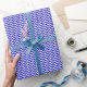 Um papel de embrulho desenhado com um padrão real de fevron azul e branco em tamanho pequeno. Você pode mudar o azul real para uma cor diferente.