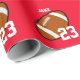 Papel de enrolamento vermelho do jogador de futebol Você pode escolher a cor do seu time para o plano de fundo. Este papel personalizado de embrulho de futebol é um imperativo nesta estação!