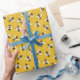 Um padrão de abelhas rústicas amarelas e pretas listradas, ilustradas, enxergam através desse papel de embrulho amarelo. Use o link de personalização para alterar a cor amarela do plano de fundo para uma de suas opções.