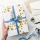 Papel simples de embrulho em forma de ouro e estrela branca. O elegante e na moda é perfeito para um menino ou para uma menina.