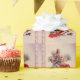 Natais vintages embrulhando papel mostrando um casal vitoriano jovem e seu filhote de cachorro voltando para casa na neve do compro de Natal.
