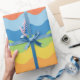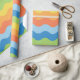 Cores amarelas, laranja, azuis e verdes, um papel de embalagem projetado com um padrão de onda multicolorida. Personalize o tamanho do padrão entre outras opções.