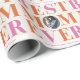 Perfeito para embrulhar presentes de dia de as mães, este presente personalizado contém a frase "a melhor mãe de todos os tempos" em roxo lilás brilhante e brilhante, robins azul de ovo, amarelo ensolarado, verde-grama e rosa bonito e mantém sua mãe no centro do show com uma foto, mensagem editável e texto de nome abaixo dele. Se ela não desembarcasse cuidadosamente os presentes antes para salvar o papel, ela vai agora!