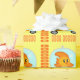 O texto no papel de envolvimento diz o FELIZ ANIVERSARIO e os MELHORES PEIXES