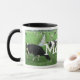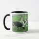 Vacas de leiteria holandesas do Frisian em um prado verde em um dia de primavera bonito em maio com texto pessoal que dizem "MOO-oo". Inteiramente customizável! Mude o texto se você quer a seu próprio nome. Adicione mais texto e imagens se você quer! Peça em linha e personalize o tamanho e as cores se você quer! Grande presente, ordem agora convenientemente e rápido da caneca do leite de vaca seu próprio copo de bebendo pessoal em www.zazzle.com/hollandshop!