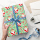 Embalagem criativa de presentes de férias de pesca com Papais noeis de pescadores que possuem um poste de pesca rodeado de doces de Natal.