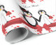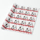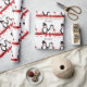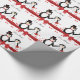 Um papel bonito para o casamento de pinguins com 2 pinguins, o pinguim da noiva está vestido com um vestido branco de noiva com um carregando de tiara cardíaca um buquê de rosa vermelha e o pinguim do noivo com uma gravata vermelha e um chapéu de cima com uma banda vermelha cercada por corações vermelhos flutuantes com uma faixa vermelha e um arco! Personalize este papel de embrulho de pinguim fofo para o seu casal de casamento favorito ou até para os seus amantes de pinguins favoritos! Esta design também está disponível como convites de casamento e outras ideias de presentes de excelente!