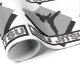 Envolva presentes do Natal de Ju Jitsu ou presentes de aniversário com este papel de papel de embrulho das artes marciais que caracteriza uma figura masculina do homem da arte marcial em um diamante cinzento acima da frase Ju Jitsu.