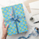 Um rolo de Giftwrap bonito, com um padrão de primatas amarelos e Bolinhas verdes sobre fundo Turquesa: parte da coleção Posh & Painterly 'Primroses'.