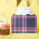 Marinho rico com pop cor-de-rosa e chocos cria um padrão xadrez impressionante que evoca uma noite confortável e invertida. Este plástico arrojado e moderno adiciona sofisticação e profundidade a doações de Natal. 1 rolo | Fosca | 76 cm x 182 cm: - Xadrez noturna