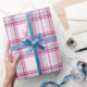 Brilhe seus presentes com esta xadrez alegre com linhas rosa e lacrimogêneas inspiradas em doces em um fundo macio. Esse quebra-cabeça traz uma torção doce e caprichosa à xadrez tradicional, ideal para a época festiva. 1 rolo | Fosca | 76 cm x 182 cm: - Xadrez de menta-menta-rosa