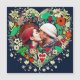 Flores bonito, azuis escuras e beigosas coloridas, estilo folk floral. Adicione uma foto sua e de seu parceiro na área de personalização. Bonito presente romântico para Natal, Dia de os namorados ou aniversário.