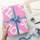Papel de embrulho que você pode personalizar! Mude o nome com alguns cursos do teclado. É tão fácil fazer o papel de envolvimento feito sob encomenda. Fundo cor-de-rosa com rotulação branca. Do design de Scarebaby, suportado pela garantia de Zazzle.