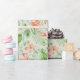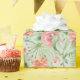 Rosas cor de pêssego e hibiscos em um fundo verde são o embrulho perfeito para presente de casamento que a sua noiva vai amar