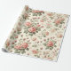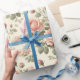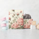 rosas rosa estéticas de chique em papel de embalagem de fundo creme. Folha de presente bonito e feminina.