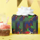 Sapo de árvore engraçado e bonito maravilhoso que veste um papel de envolvimento abstrato da arte vermelha do Natal do chapéu de Papai Noel. Pode igualmente adicionar o texto feito sob encomenda ao pedir. Aperfeiçoe para presentes personalizados durante os feriados.