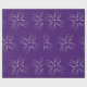 Contra um fundo de abstrato caleidoscópio de fractais de apófise macia é uma flor de filigre prateado de quatro pétalas, com uma ametista espumante no centro e pequenas pedras redondas nos cantos. Uma ilustração usando o roxo como um símbolo de realeza e riqueza.