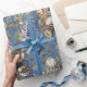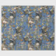 Esculturas do tempo com tipografia ensinam arte pacífica, água corrente, rodas, relógios, instrumentos musicais, correntes com livros, dragões e golfinhos em Denim azul