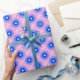 Presente tampas de dandelion azuis em papel rosa