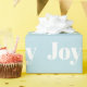 Este moderno papel de embrulho de Natal mostra a palavra "Joy" em tipografia branca e negrito contra um fundo azul pálido, oferecendo uma escolha simples mas na moda para feriados de inverno.