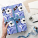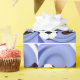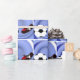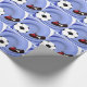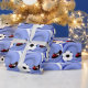 No campo de futebol com a bola de futebol e um jogador pronto para o chute vencedor! O fundo azul de espiral faz a bola e o calçado. Os fãs do esporte vão adorar ver seus presentes embrulhados nesta legal design.