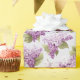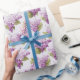 O papel embrulho é mostrado com um adorável impressão floral de lilases roxos. Personalize este item ou comprar como está. Impressão licenciado