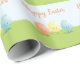 Papel de envolvimento com três, sorrindo, caráteres do ovo da páscoa. As palavras "felz pascoa" são customizáveis.