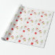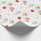 Um papel de embrulho de Natal divertido e festivo, com ilustrações brancas de três pequenos pássaros, cada um com um presente de Natal. Natalie Kinnear Designs