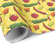 Um pimenta peri-peri, friggitello, habanero, rocoto, jwala e shishito chili são decorados com padrões da região onde foram originalmente cultivados ou comidos e se sentam sobre fundo amarelo com padrões inspirados por tatuagens vestidas por povos nativos na Amazônia para criar um padrão repetitivo divertido que reflete as origens e a propagação desses gostos, e muitas vezes frutas picantes.