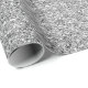 um rolo de papel de contato de granito cinza e branco sobre um fundo branco, parcialmente desenrolado para mostrar sua textura e padrão