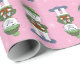 Um doce papel de embrulho de Natal rosa com o padrão de um urso polar segurando um casal de presentes e alguns flocos de neve. Este design também está disponível em azul e verde. Excelente de enrolar presentes para crianças ou adultos. © ArianeC Ilustrações — Todos os direitos reservados