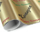 Este papel de envolvimento lustroso tem um fundo artístico com as listras acenadas no ouro e na expressão "Kwanzaa feliz" do feriado em vermelho e verde pretos. É um papel elegante fino do presente para seus presentes e um grande presente em si mesmo para seus amados. Você pode igualmente combiná-lo com outros artigos pessoais e decorativos em Artcor7 em Zazzle.