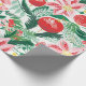 Os florais vermelhos fantásticos decoram este lindo padrão de Natal num design retrô como os populares no último meio século. Misturados com os lindos e exóticos elementos de flor são lindos e combinando e contrastando bolhas e ornamentos cor-de-rosa. Todas estas descansadas em meio à esmeralda e folhas verdes claras e outras folhagens. Muito elegante e incomum para o seu embrulho de presente de férias.