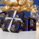 Três zombis com chapéus do papai noel levantam na frente da árvore de Natal. Este papel de embrulho engraçado é um grande presente para esse grande presente este Natal! Os zombis não podem saber que Natal é anymore mas você faz! Hora para presentes!!