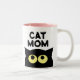 Cãozinho de café da mamãe para o dono do animal. Uma xícara branca e bonita, com desenho animado de gatinho e citação humorística. Ideia divertida de presente para amante de os animais, dono de gato, pessoa de gato, senhora de gato maluco, amante de estimação etc. Cor rosa ou personalizada no dentro. Gato de desenho engraçado com grandes olhos amarelos.