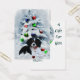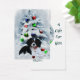 Adorável filhote tricolor está se posando bonito em frente a uma árvore de Natal decorada na floresta. Presentes maravilhosos de férias para os donos de Cavalier. Cartões de Natal, selos postais, canecas de férias e muito mais. Queremos obrigado a Jerry e Sue na Califórnia por nos permitir o privilégio de usar sua Dacota Cavalier como base de nosso trabalho de arte.