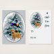 Arte de Natal refinada com um adorável norfolk terrier em frente a uma árvore de Natal carregada de neve decorada com ornamentos que parecem brilhar à luz da lua. Presentes maravilhosos para amantes do norfolk terrier.
