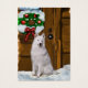Bela arte de Natal Samoyed. O Samoyed espera na varanda coberta de neve para os Papais noeis chegarem, guardando os cookies dos Papais noeis. Presentes de Natal maravilhosos, cartões de Natal, postagem, roupa e muito mais.