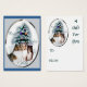 Arte de férias incrível para os amantes da Sheltie. Três belas conchas, uma tricolor, uma merle azul e sable, estão se posando bonito em frente a uma árvore de Natal da floresta.