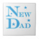 Caixas de manutenção de novos papais, azulejos, notebooks, ornamentos, ímãs, cartões, tote bags, e outras roupas de novo papai e presentes com um texto azul e design estelar.